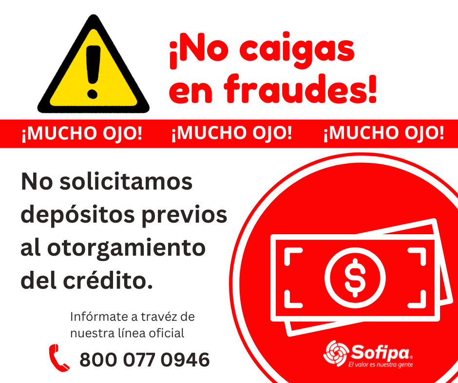 “SOFIPA nunca solicita depósitos ni transferencias por adelantado para la aprobación o el desembolso de un crédito.
